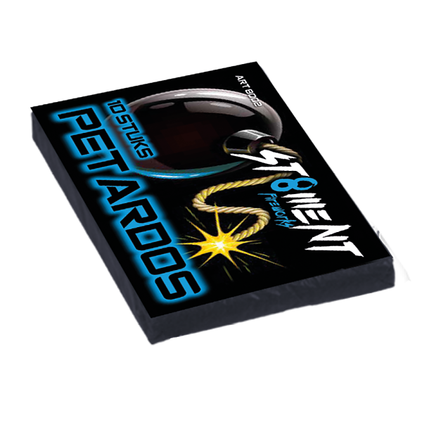 Petardos, 10 stuks echte knetterrotjes. Met een knipoog naar de kanonslag/astronaut van vroeger. Traditioneel en nostalgisch stookvoer.